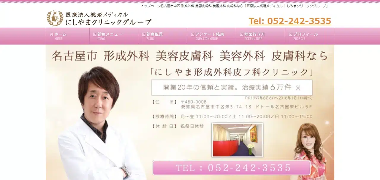 にしやま形成外科皮フ科クリニックは、愛知県名古屋市中区栄3-14-13 ドトール名古屋栄ビル5Fの位置にあるクリニックです。