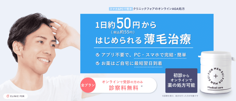 AGAオンラインクリニックでは、AGA治療を初回半額で受けることができます。診察料から配送料まで完全無料なので、試したい方にぴったりのクリニックです。 - 24時間予約受付可能