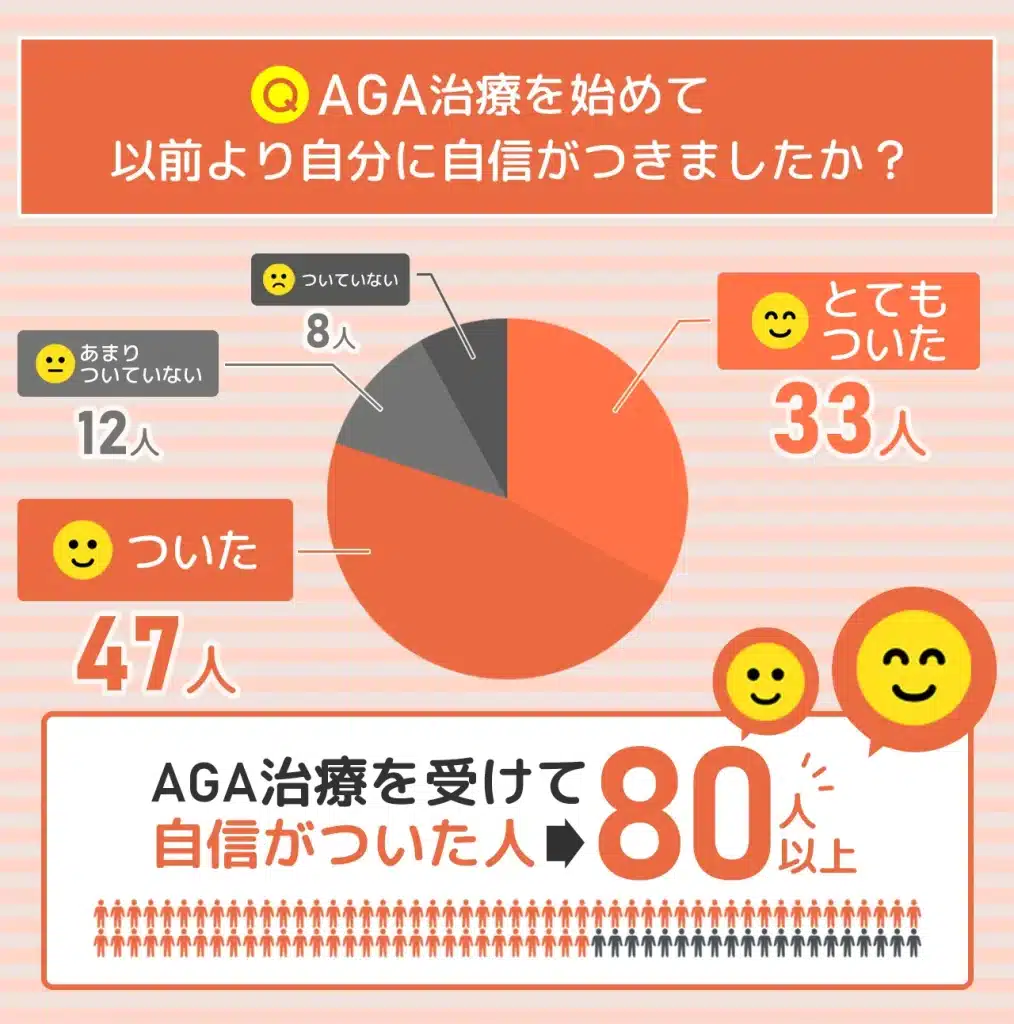 AGA治療を受けた人の約80人以上が自信を得たと回答