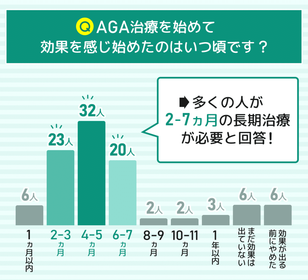 AGA治療の効果は4.5ヵ月後に感じたと回答する人が最多