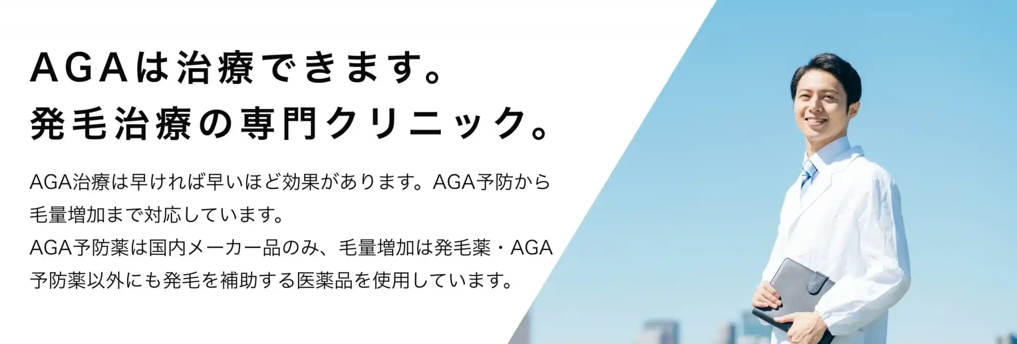 一方でこれらのケアは予防であり、根本的にAGAの治療を行いたい場合はクリニック等でAGA治療を受けることがおすすめです。