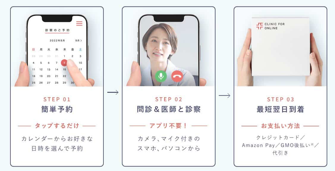 診療は5〜10分程度で済み、初診からオンライン診療可能なので自宅や職場など場所を選ばず、いつでもどこからでも利用可能です。